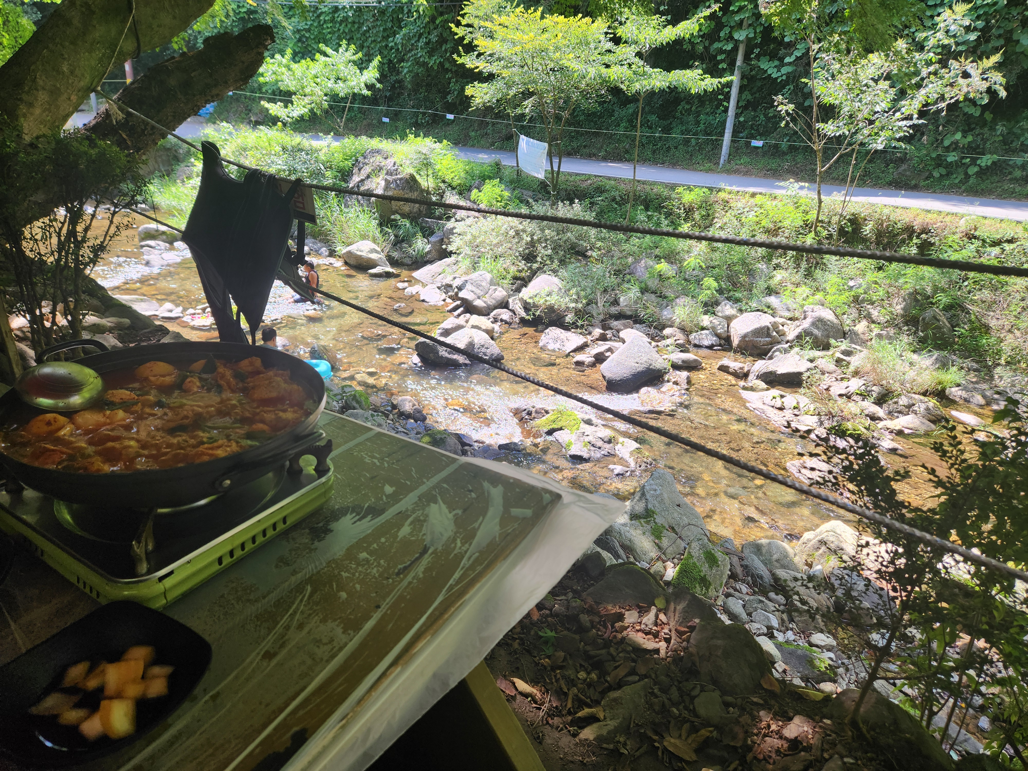 우리는 본격적으로 물놀이를 하려고 온 것은 아니었기 때문에 밥을 먹다 배부르면 내려와서 발담그고 멍때리고,