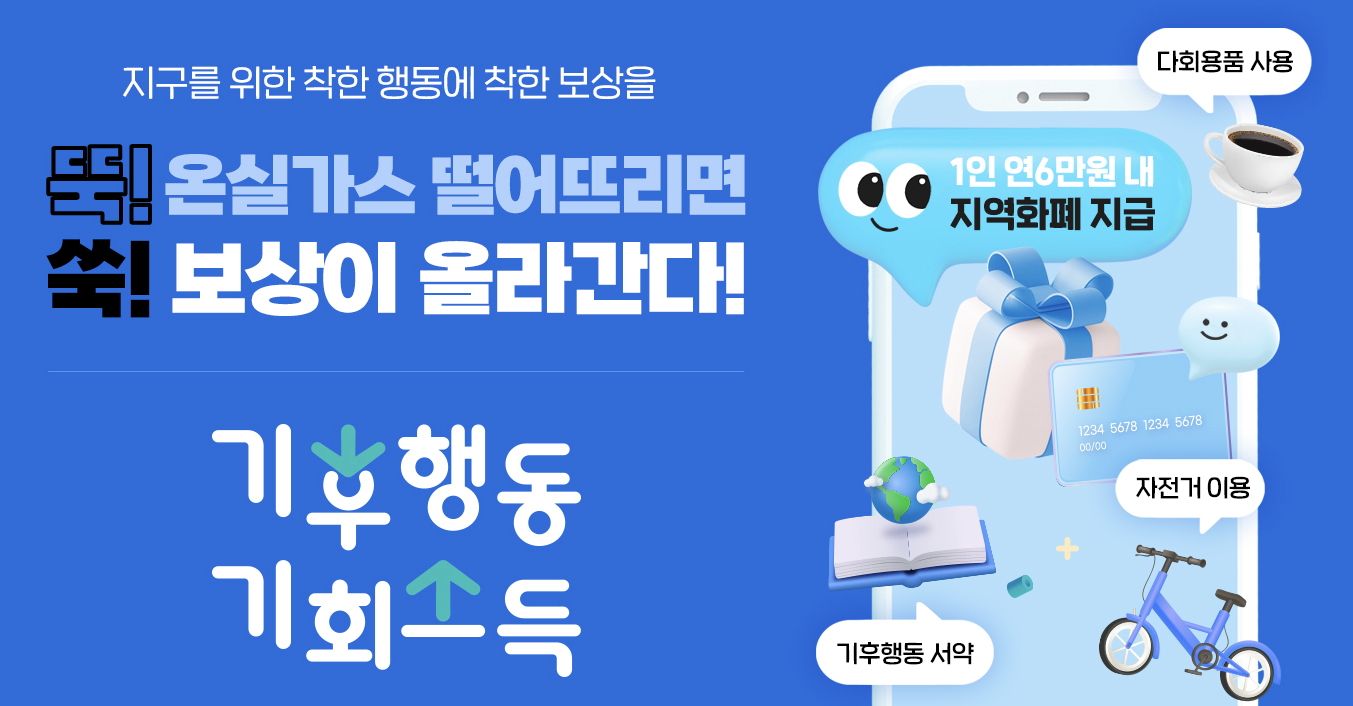 이번에 경기도에서 온실가스 감축을 위한 행동을 하면 착한 보상을 주는 '기후행동 기회소득' 이라는 것이 생겼다고 해서 가입을 해보았다