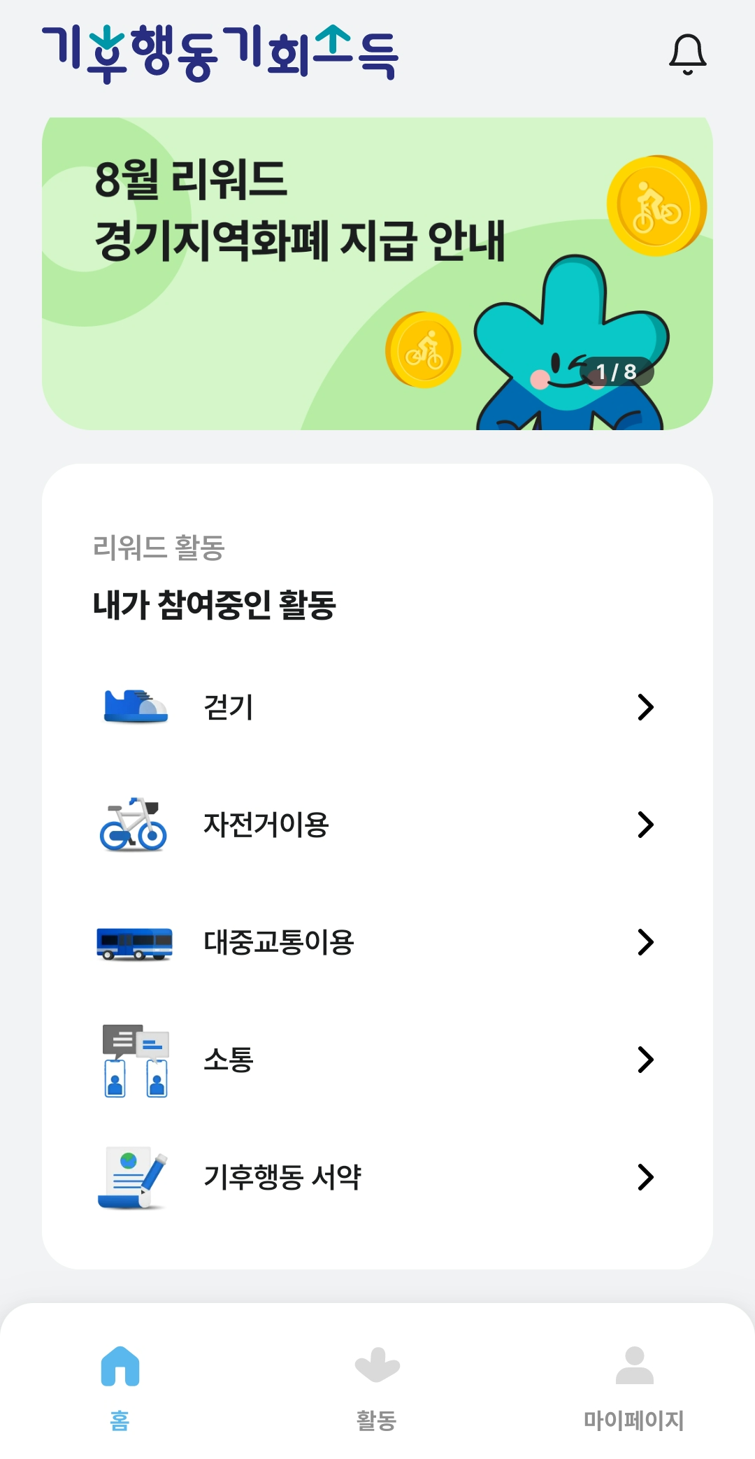 대세는 기후, 경기도 기후행동 기회소득 앱 설치 및 미션 수행 후 리워드 지급받은 후기