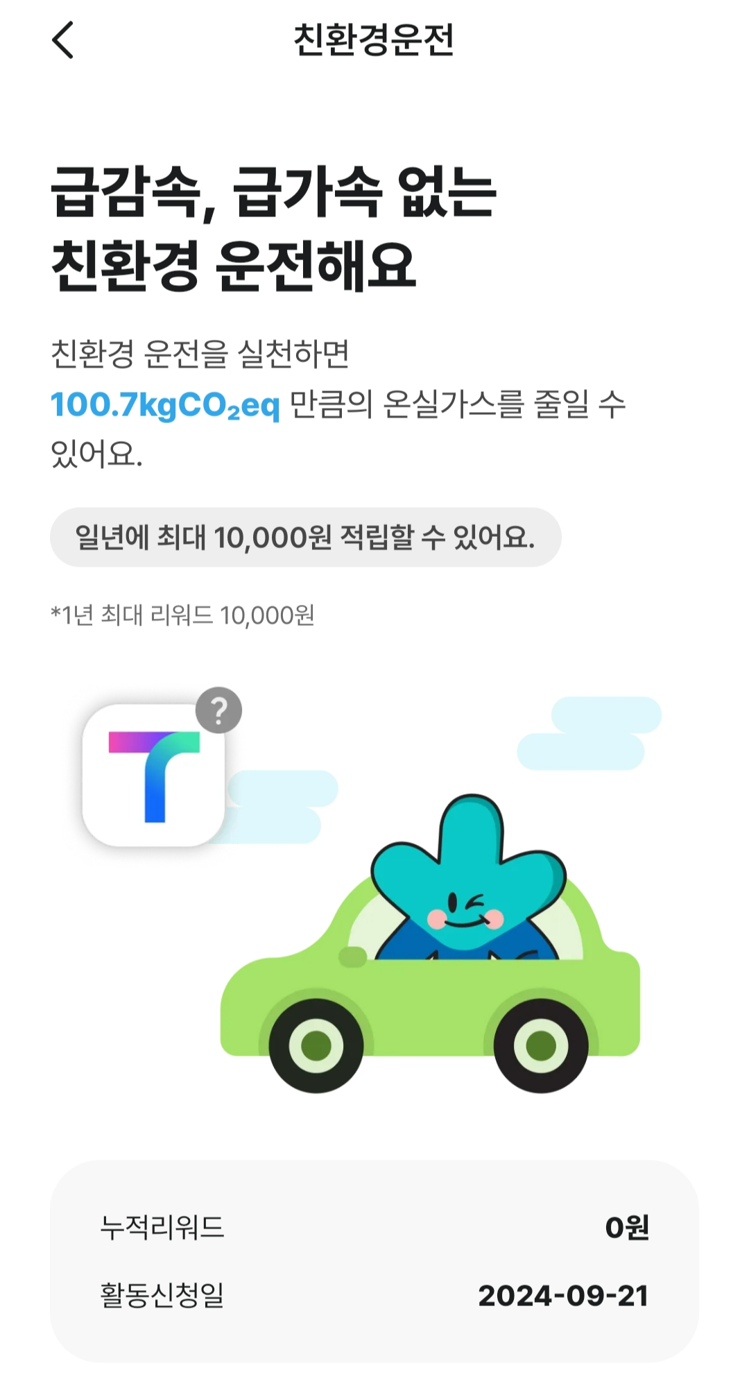 급가속, 급감속 없는 친환경 운전으로 리워드 10,000원에 도전해 봐야겠다는 의지가 뿜뿜~~