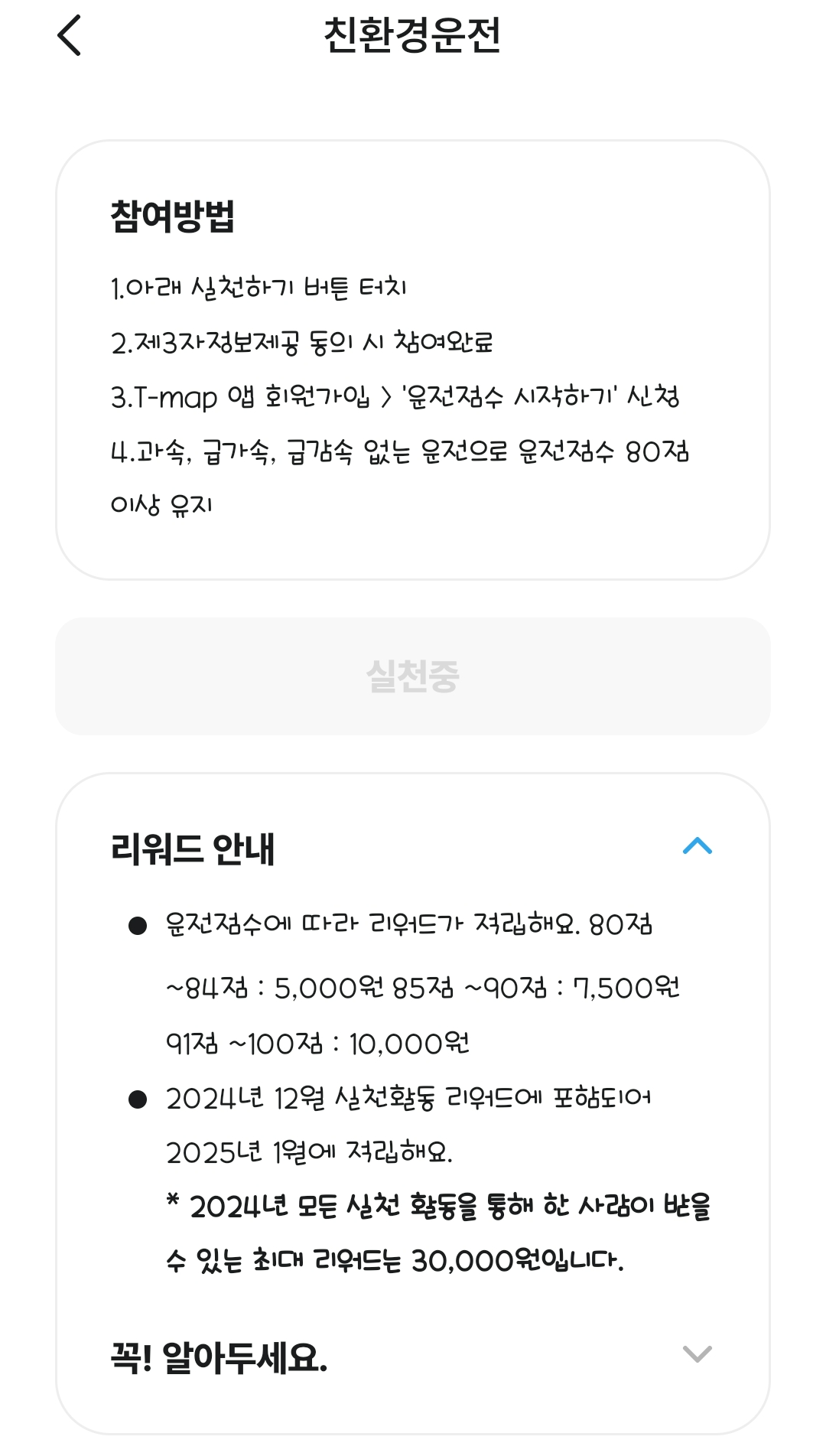 T맵을 연결해 두면 12월말 운전점수 기준에 따라 리워드가 적립된다고 한다