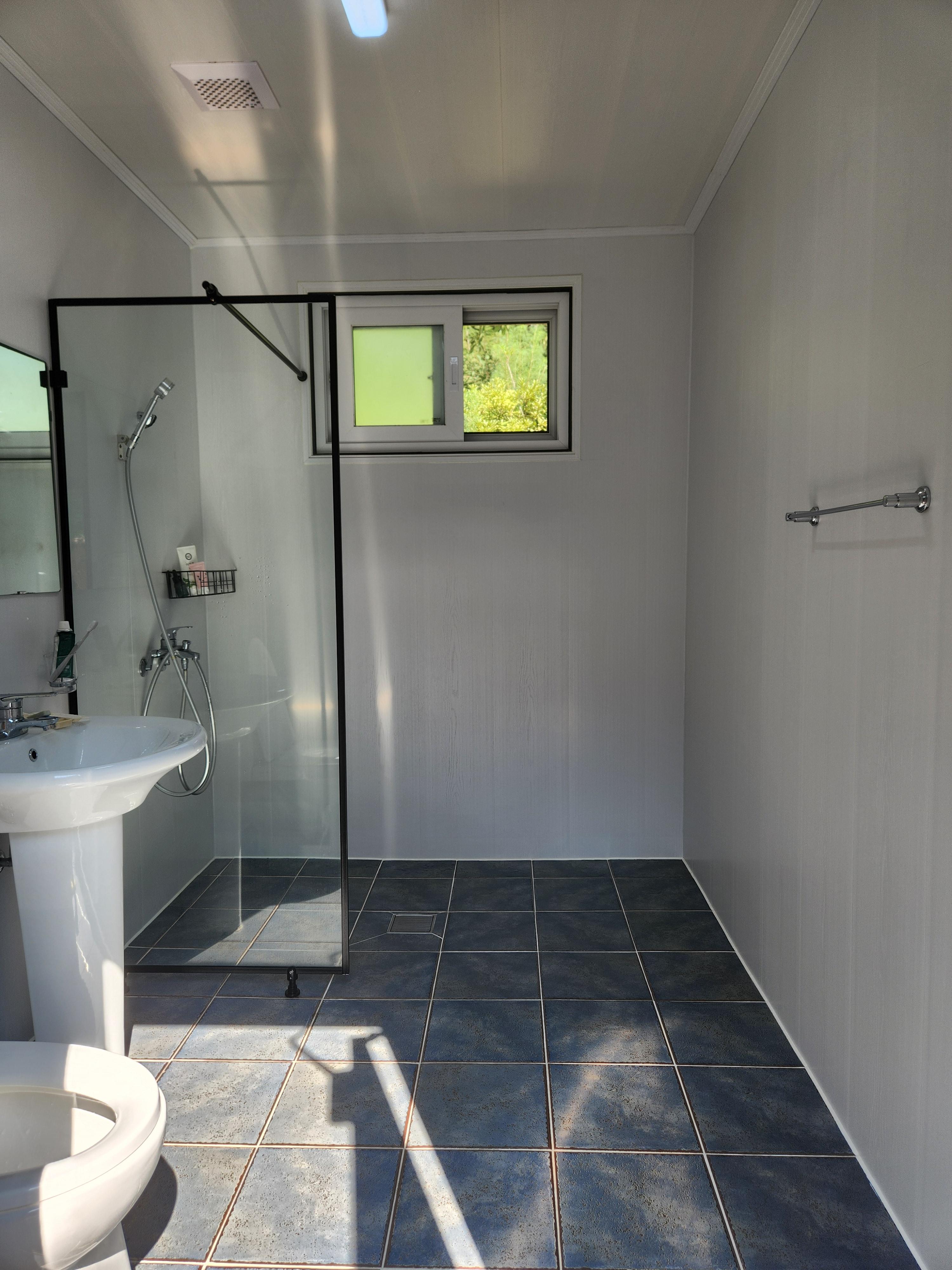 제일 왼쪽은 매점과 개수대가 있는 건물, 뒤쪽으로 개별 화장실(선착순, 비용 별도)이 있는 건물과 화장실 내부