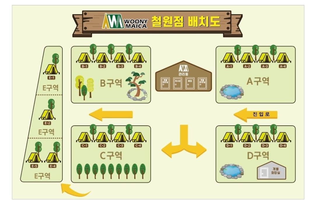 A~E까지 총 5구역이 있는데 제일 명당이라고 할만한 사이트는 D구역이 될 것 같아요
